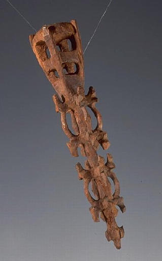 Cette sculpture, qui apparaît comme un manche de chasse-mouche, représente en fait les généalogies divines qui précèdent les généalogies humaines