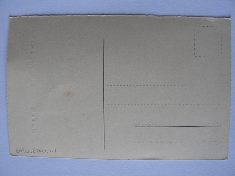 Carte au format portrait avec photographie mise en couleur par aquarelle ; elle représente la statue du Prince Royal Frédéric en bronze sur un socle en grès des Vosges