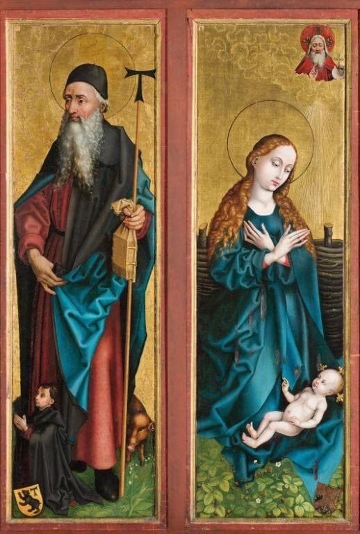 Quandt J. G. von, ""Uber Martin Schongauer als Maler und seine Werk in Colmar"", Kunstblatt, 1840, n° 76, 22/09/1840, p. 322-323. ; RT, ""Über Martin Schongauer's Ölgemälde und Handzeichnungen"", Kunstblatt, 1841, n° 7, 26/01/1841, p. 26-27. ; Waagen Gustav Friedrich, ""Dreizehner Brief, 12/11/1843"", Künstler in Deutschland, 1845 ; Passavant Johann David, ""Beiträge zur Kenntniss der alten Malerschulen Deutschlands bis das sechzehnte Jahrhundert”", Kunstblatt, 1846, n° 41f, p. 170. ; GALICHON Émile, ""Martin Schöngauer. Peintre et graveur du 15e siècle"", Gazette des Beaux-Arts, 1859, p. 323. ; p. 72-73, n° 201-204. ; GOUTZWILLER, Charles, Catalogue du Musée de Colmar, Colmar, 1866, p. 50-81, n° 132-135. ; p. 20-22, et 54. ; SCHEIBLER Ludwig, "Schongauer und der Meister des Bartholomäus", Repertorium für Kunstwiisenschaft, 1884 ; SCHMID Heinrich Alfred , Die Gemälde und Zeichnungen von Matthias Grünewald, Strasbourg, 1911, p. 94, 340 et 351. ; p. 58-59, n° 32-35. ; GEISBERG Max, "Schongauer", Allegemeines Lexikon der bildenden Künstler von der Antike bis zur Gegenwart, Leipzig, 1930, tome 30, , 1930, p. 251. ; MARTIN Paul E., ""Jean d'Orlier, Commandeur d'Issenheim (1480-1490)"", Bulletin de la Société Schongauer à Colmar 1923-1933, 1933, p. 59-60. ; WALTZ Jean-Jacques, Le Musée d'Unterlinden à Colmar. Guide suivi du catalogue des œuvres d'art exposées à la Chapelle. Avec une étude sur l'art médiéval par Claude Champion, Paris, Floury, 1938, p. 50-51, n° 32-35. ; BUCHNER Ernst, Martin Schongauer als Maler, Berlin, 1941, p. 56-74, 178. ; FLECHSIG Eduard, Martin Schongauer, Strasbourg, 1944-1946, p. 383-387. ; BAUM Iulius, Martin Schongauer, Vienne, 1948, p. 51-52. ; WALTZ Jean-Jacques, Le Musée d'Unterlinden à Colmar. Guide suivi du catalogue des œuvres d'art exposées à la Chapelle. Avec une étude sur l'art médiéval par Claude Champion, Colmar-Paris, Alsatia, 1951, p. 54-55, n° 33-36. ; p. 46, n° 33-36. ; STANGE Alfred, Deutsche Malerei der Gotik, Munich-Berlin, 1955, t. VII, p. 21-22. ; n° 1025-1026. ; p. 43-44, n° 33-36. ; STANGE Alfred, Kritisches Verzeichnis der deutschen Tafelbilder vor Dürer, Munich, 1970, t. II, n° 79. ; RECHT Roland, ""Les sculptures du Retable d'Issenheim"", Grünewald et son œuvre. Actes de la Table Ronde organisée par le Centre national de la Recherche Scientifique à Strasbourg et Colmar du 18 au 21 octobre 1974, 1975, p. 44. ; MISCHLEWSKI Adalbert, ""Die Auftraggeber des Isenheimer Altares"", Grünewald et son œuvre. Actes de la Table Ronde organisée par le Centre national de la Recherche Scientifique à Strasbourg et Colmar du 18 au 21 octobre 1974, 1975, p. 19-23. ; STERLING Charles, "Jost Haller, Maler zu Strassburg und zu Sarrbrücken in der Mitte des 15. Jahrhunderts ", Wiener Jahrbuch für Kunstgeschichte, 1980, XXXIII, p. 99-126. ; STERLING Charles, "Jost Haller, peintre à Strasbourg et à Sarrebrück au milieu du 15e siècle", Bulletin de la Société Schongauer à Colmar 1979-1982, 1983, p. 53-112. ; p. 32, ill. p. 33. ; HECK Christian, Martin Schongauer, Colmar, 1986, p. 10-23. ; p. 268. ; HECK Christian, MŒNSCH-SCHERER Esther, Catalogue général des peintures du musée Unterlinden, Colmar, Musée Unterlinden, 1990, n° 452, ill. + pl. 16-18, 63 ; LECOQ-RAMOND Sylvie, BEGUERIE Pantxika, Le Musée d’Unterlinden de Colmar, Paris, Musée et Monuments de France, Société Schongauer et Albin Michel, édité avec le concours de la Fondation Paribas, 1991, p. 46-48, ill. p. 46-47. ; Le Beau Martin. Gravures et dessins de Martin Schongauer (vers 1450-1491), Colmar, Colmar, 13 septembre-1er décembre 1991, p. 66-67. ; ill. p. 18. ; BOYER Guy, Champion Jean-Loup, Mille peintures des musées de France, Paris, Gallimard/Beaux-arts magazine, 1993, p. 32-33, ill. p. 32-33. ; FRÉCHET Georges, ""La construction et les trésors d'art d'une commanderie alsacienne : Issenheim"", Auf den Spuren des heiligen Antonius. Festchrift für Adalbert Mischlewski zum 75. Geburstag, 1994, p. 274-275. ; HECK Christian, ""Schongauer"", The Dictionnary of Art, 1996, p. 150-151. ; Hochart-Giacobbi Annie, VERGEZ Patricia, ""Le Retable d'Orlier, Martin Schongauer. Brocarts appliqués. Une technique rare : l'utilisation du papier"", Bulletin de la Société Schongauer 1993-1996, 1997, p. 178-195, ill. p. 178, 180, 181, 183-191. ; CLÉMENTZ Élisabeth , Les Antonins d’Issenheim, Essor et dérive d’une vocation hospitalière à la lumière du temporel, Strasbourg, Société Savante d’Alsace, 1998, ill. p. 260. ; GuiLLOT DE SUDUIRAUT Sophie, "“La Vierge à l'Enfant d'Issenheim. Un chef-d'œuvre bâlois de la fin du Moyen Age”", Les dossiers du Musée du Louvre, 1998, p. 30-35. ; Nicolaisen Jan, ""Einige Beobachtungen zur 'Privatisierung' des gedruckten Bildes im 15. Jahrhundert. Publikum und Gebrauch des Kupferstichs"", Spiegel der Seligkeit. Privates Bild und Frömmigkeit im Spätmittelalter, Nuremberg, Germanisches Nationalmuseum, 31 mai - 8 octobre 2000, 2000, p. 43-44. ; PERGER Mischa von, ""Die Inschriften in Martin Schongauers 'Jüngstem Gericht' im Breisacher Münster"", Zeitschrift für Kunstgeschichte, 2000, n° 6, p. 400-406. ; Jost Haller : le peintre des chevaliers et l’art en Alsace au 15e siècle, Colmar, Musée Unterlinden, 15 septembre-16 décembre 2001, p. 57, ill. 23-24 ; ill. p. 135. ; Kemperdick Stephan, Martin Schongauer, Petersberg, 2004, p. 190-200 et 274, ill. 195-197. ; n° 69, 70, 72, 73, n° 20-25, p. 163, 164, 166, 171, 474-477. ; p. 59. ; p. 59. ; p. 8-10, ill. ; BEGUERIE-DE PAEPE Pantxika, DELCOURTE Benoît, GOERIG-HERGOTT Frédérique, HAAS Magali, PLOUIN Suzanne, Guide des Collections - Le Musée Unterlinden, Paris, Editions Artlys, 2015, p. 98-99 ill. ; fig. 2, p. 39