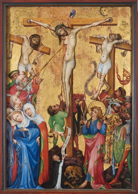 Un grand artiste à Strasbourg au tournant du 15e siècle : le Maître de la Crucifixion au Dominicain, Hermann Schadeberg, Strasbourg 1400. Un foyer d'art dans l'Europe gothique, Strasbourg, p. 36-53 et 136-137, ill. ; p. 41-43, n° 105. ; GOUTZWILLER, Charles, Catalogue du Musée de Colmar, Colmar, 1866, p. 37-38, n° 105. ; p. 113-114. ; KRAUS Franz Xaver, Kunst und Alterthum in Elsass-Lothringen, Kunst und Alterthum im Ober-Elsass, Strasbourg, Strassburg : C.F. Schmidt, 1884, p. 374-375. ; p. 68-70, n° 57. ; FUTTERER Ilse, "Eine Gruppe oberrheinischer Tafelbilder des 15. Jahrhunderts", Oberrheinische Kunst, 1926-1927, II, p. 15-18. ; WALTZ Jean-Jacques, Le Musée d'Unterlinden à Colmar. Guide suivi du catalogue des œuvres d'art exposées à la Chapelle. Avec une étude sur l'art médiéval par Claude Champion, Paris, Floury, 1938, p. 65-70, n° 57. ; FISCHEL L., "Eine Strassburger Malerwerkstatt um 1400", Münschner Jahrbuch für bildenen Kunst, 1950, vol. I, p. 159-163. ; STANGE Alfred, Deutsche Malerei der Gotik, Munich-Berlin, 1951, p. 68-72. ; WALTZ Jean-Jacques, Le Musée d'Unterlinden à Colmar. Guide suivi du catalogue des œuvres d'art exposées à la Chapelle. Avec une étude sur l'art médiéval par Claude Champion, Colmar-Paris, Alsatia, 1951, p. 63-65, n° 57. ; p. 55-57, n° 57. ; Anzelewsky Fedja, Miniaturen aus der Toggenburg-Chronik aus dem Jahre 1411, Baden-Baden, 1960, p. 5 et s. ; p. 281, n° 960. ; p. 50, n° 57. ; STANGE Alfred, Kritisches Verzeichnis der deutschen Tafelbilder vor Dürer, Munich, 1970, t. II, n° 36. ; MUSPER Heinrich Theodor, Altdeutsche Malerei, Cologne, 1970, p. 78. ; Die Parler und der Schöne Stil, 1350-1400 : europäische Kunst unter den Luxemburgern, Cologne, Kunsthalle Köln, 29 novembre 1978-18 mars 1979, t. 1, p. 289. ; STAMM Liselotte Esther, Die Rüdiger Schopf-Handschriften : die Meister einer Freiburger Werkstatt des späten 14. Jahrhunderts und ihre Arbeitsweise, Aarau - Frankfurt-am-Main - Salzburg, 1981, p. 202, 212, 219, 249, 251, 254., Aarau, Sauerländer, 1981, p. 202, 212, 219, 249, 251, 254. ; CHÂTELET Albert, "Le dessin sous-jacent d'une crucifixion d'un maître de l'école du Rhin Supérieur vers 1400 conservée au musée d'Unterlinden à Colmar, ", Colloque de l'Université catholique de Louvain, 1985 ; Regensburger Buchmalerei : von frühkarolingischer Zeit bis zum Ausgang des Mittelalters, Ratisbonne (Regensburg), Leeren Beutel, 16 mai - 9 août 1987, p. 93-99. ; HECK Christian, MŒNSCH-SCHERER Esther, Catalogue général des peintures du musée Unterlinden, Colmar, Musée Unterlinden, 1990, n° 536, ill. ; Stefan Lochner, Meister zu Köln : Herkunft, Werke, Wirkung, Cologne, Wallraf-Richartz-Museums Köln, 3 décembre 1993-27 février 1994, p. 35 et s. ; Die Karlsruher Passion : ein Hauptwerk Strassburger Malerei der Spätgotik, Karlsruhe, Staatliche Kunsthalle Karlsruhe, 4 avril-30 juin 1996, p. 16-17. ; SUCKALE Robert, "Les peintres Hans Stocker et Hans Tiefental : l'"ars nova" en Haute Rhénanie au 15e siècle", Revue de l’art, 1998, n° 2. ; Jost Haller : le peintre des chevaliers et l’art en Alsace au 15e siècle, Colmar, Musée Unterlinden, 15 septembre-16 décembre 2001, p. 110-112 et 237. ; Kurmann-Schwarz Brigitte , Glasmalerei im Kanton Aargau. 1, Königsfelden, Zofingen, Staufberg, 2002, ill. p. 116. ; LORENTZ Philippe, "Un peintre bâlois contemporain de Konrad Witz : le Maître de Friedrich zu Rhein", Kunst + Architektur in der Schweiz / Art + Architecture en Suisse, 2007, n° 3, p. 30-36, ill. n° 3. ; Strasbourg 1400. Un foyer d'art dans l'Europe gothique, Strasbourg, musée de l'Œuvre Notre-Dame, 28 mars - 6 juillet 2008, cat. 4, ill. ; LORENTZ Philippe, "La géographie artistique de l'Oberrhein à l'échelle d'un foyer : attraction et rayonnement de Strasbourg à l'époque du Gothique 'international", Historische Landschaft-Kunstlandschatft ? Der Obberrheim im späten Mittelalter, 2008, t. LXVIII, p. 401-418. ; BEGUERIE-DE PAEPE Pantxika, DELCOURTE Benoît, GOERIG-HERGOTT Frédérique, HAAS Magali, PLOUIN Suzanne, Guide des Collections - Le Musée Unterlinden, Paris, Editions Artlys, 2015, p. 84-85 ill.