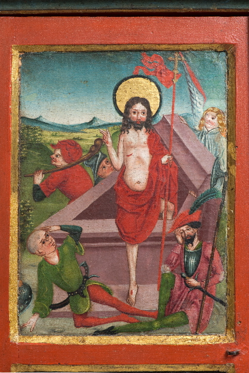 Retable fermé : Résurrection - Ascension du Christ (volet gauche)