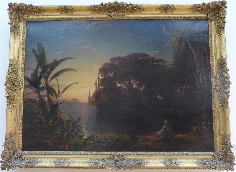 Vertaizon, 1811 ; Paris, 1847 ; Fils de banquier, il passa une jeunesse heureuse dans un château en Auvergne, puis dans la petite ville de Thiers, avant de monter à Paris étudier la peinture avec Camille Roqueplan. C'est en tant que dessinateur de l'expédition scientifique d'un aristocrate autrichien se piquant de botanique, le Baron Karl von Hügel, que Marilhat envisagea en 1831 son voyage en Orient : Syrie, Liban, Palestine, puis, début 1832, Haute-Egypte. Passionné par l'architecture du Caire et d'Alexandrie dont il réalisa de nombreux relevés, et alors que le baron poursuivit son voyage vers l'Inde, il choisit de rester en Egypte. Il vit là de son art, réalisant des portraits. Il retourna en France à bord du «Sphinx», accompagnant le transbordement de l'obélisque de Louksor affrété par le Baron Taylor. Exposés au Salon en 1834, ses premiers tableaux firent sensation et l'imposèrent comme une des figures majeures d'un courant orientaliste en peinture. Fromentin le rangea parmi les fondateurs du mouvement : il célèbra en lui le paysagiste, à côté du «peintre de genre», Dauzats, et du «peintre d'histoire», Delacroix. La notoriété de Marilhat tient à un petit nombre d'oeuvres, mais d'une étrange intensité. Rapidement diminué par les accès d'une maladie dite mentale, il se révéla incapable de repartir pour un séjour au Caire. Il obtint cependant, grâce au soutien amical de Mérimée, une pension annuelle, mais mourut peu après, à l'âge de 36 ans.
