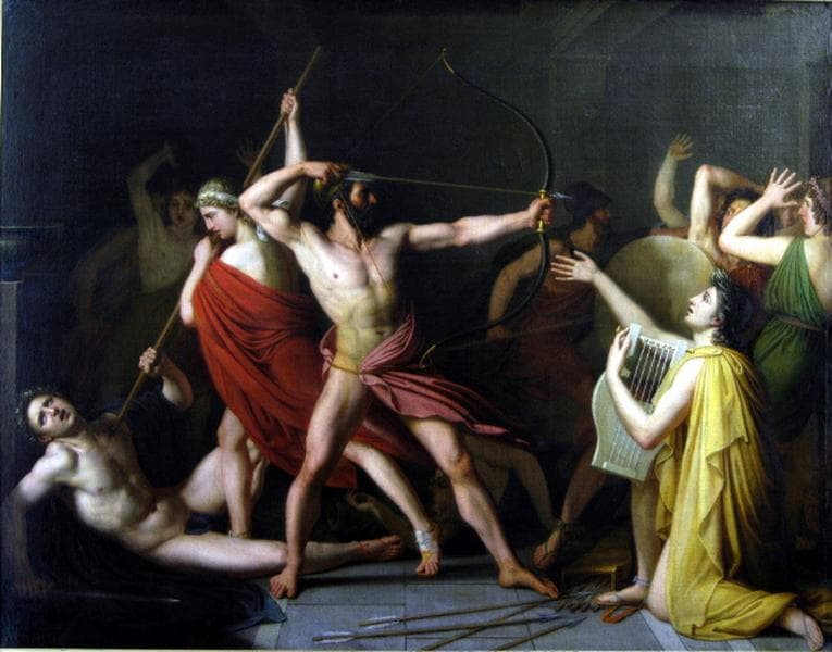 Alors élève de Jacques Louis David (1748-1825), Thomas Degeorge concourt pour le prix de Rome de 1812 avec ce sujet néoclassique. Ce tableau illustre un épisode du chant XXII de l'Odyssée, la célèbre épopée du poète grec Homère (VIIIe siècle avant J.C).