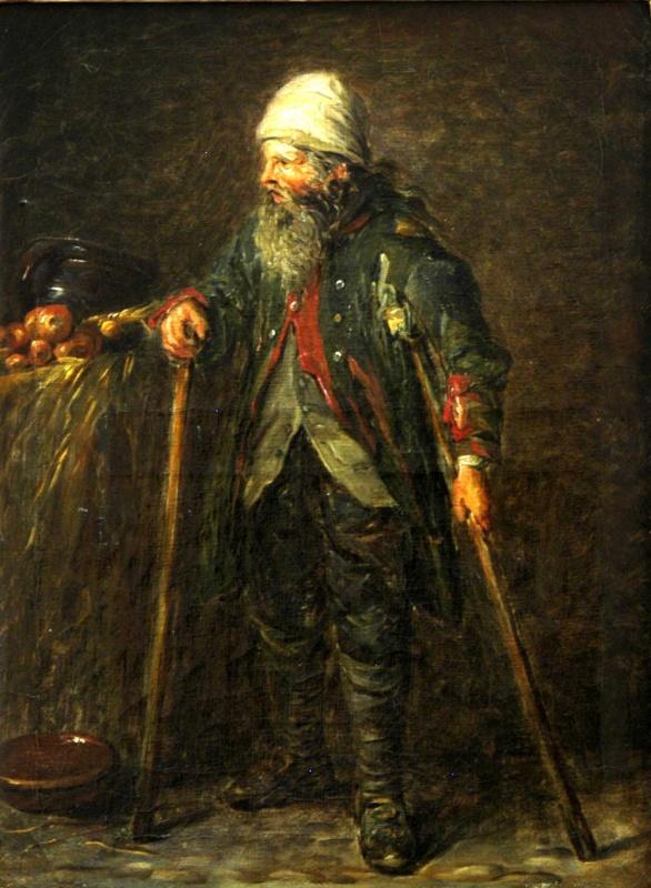 portrait (soldat, béquille, écuelle, cruche, veste, uniforme)