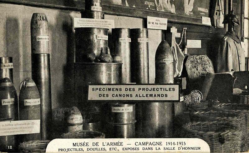 MUSEE DE L'ARMEE - Campagne 1914-1915 - Projectiles, douilles, etc., exposés dans la salle d'honneur (titre inscrit)