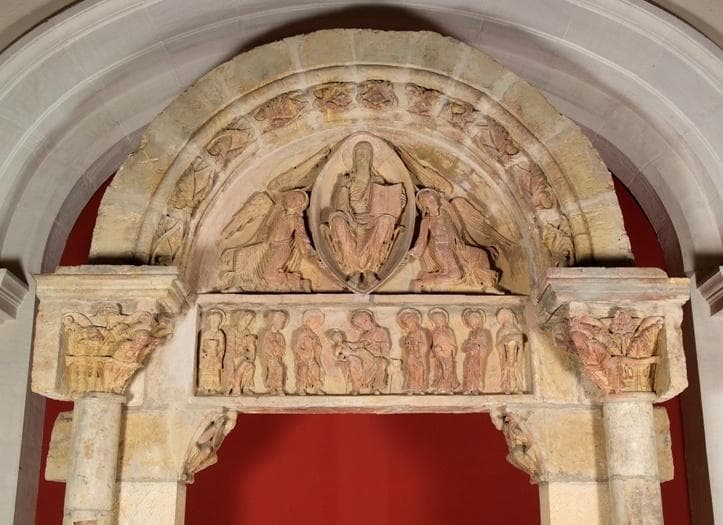Le tympan d'Anzy-le-Duc est l'un des derniers tympans romans sculptés du Brionnais dont l'iconographie s'apparente à celui de Charlieu. Il provient du portail ouest du prieuré d'Anzy-le-Duc aujourd'hui disparu. Démantelé en 1791 pendant la Révolution Française et conservé dans le château d'Arcy chez un particulier, Monsieur de Fontenille, qui en fit don au musée en 1896, il est très bien conservé.