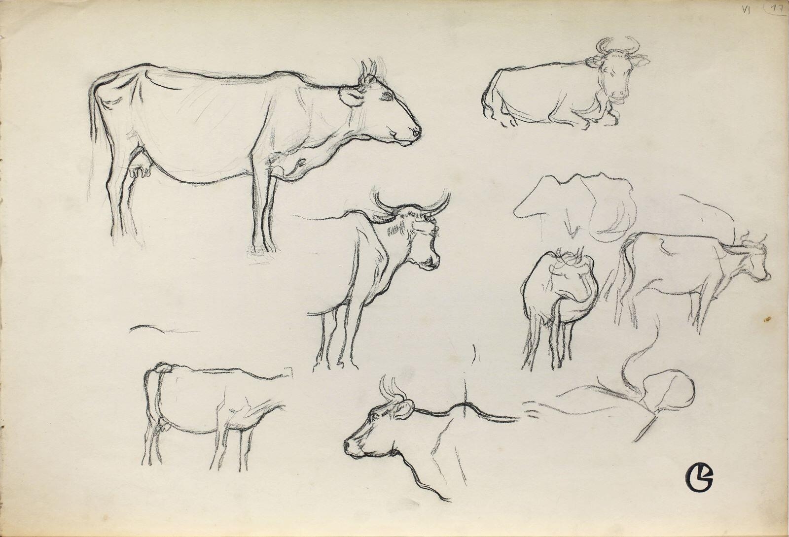 Georges Lacombe manifeste très tôt un intérêt particulier pour l’étude des animaux. Si ces derniers occupent une place relativement faible dans l’œuvre peint ou sculpté de Lacombe, les dessins qu’il réalise démontrent plutôt sa curiosité pour la vie quotidienne et pour les réalités qui l’entourent. Ainsi, en Bretagne, il se plaît à esquisser des vaches.