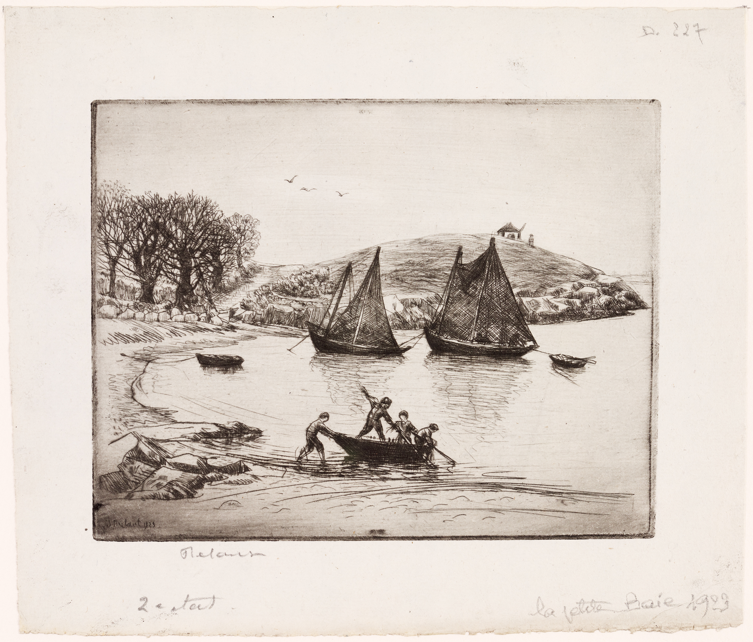 Signature b.g. gravé : Jean Frélaut ; Datation b.g. gravé : 1923 ; Signature b.g. marge : Frélaut ; Inscription : 2me état - La petite baie - 1923