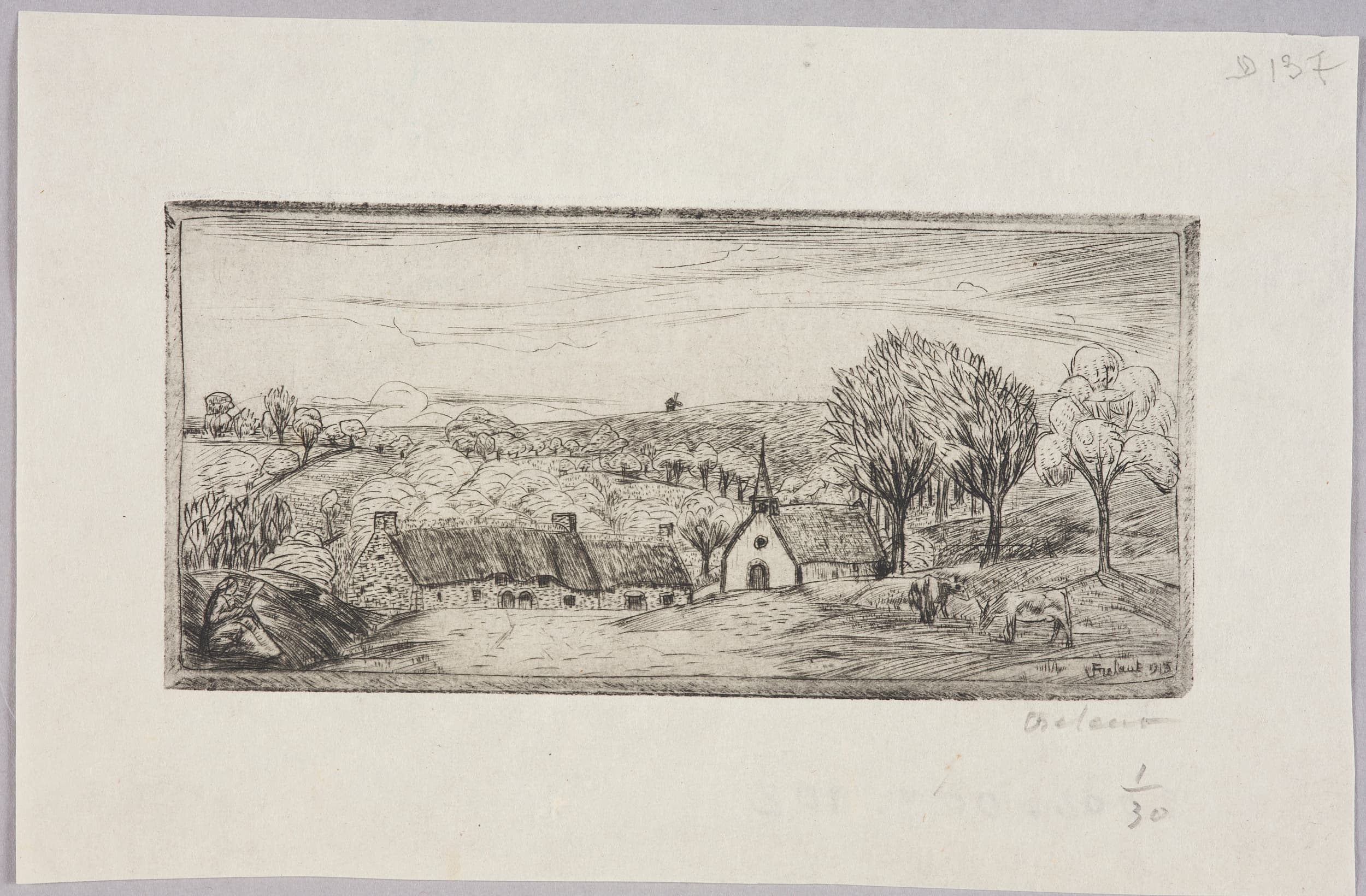 Signature b.d. marge : Frélaut ; Tirage b.d. marge : 1/30 ; Inscription h.d. marge : D 137 ; Signature b.d. gravé : Frélaut ; Datation b.d. gravé : 1913 ; Inscription b.g. revers : D.137