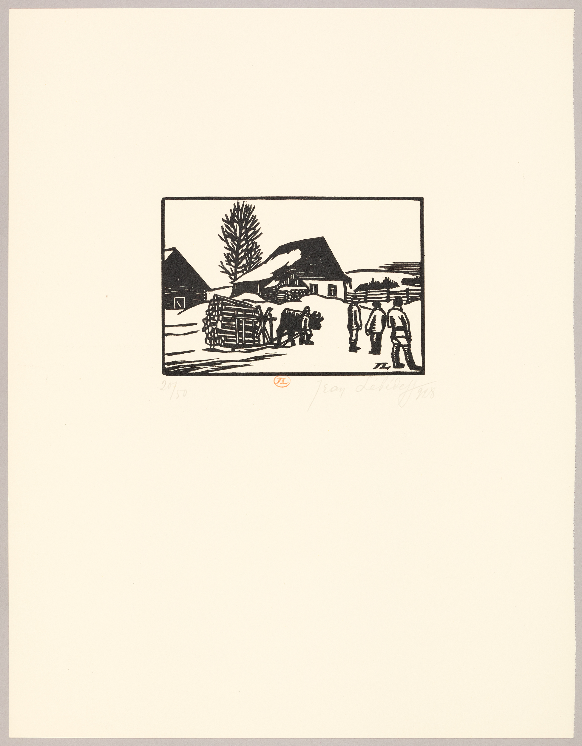 Signature b.d. marge : Jean Lébédeff ; Datation b.d. marge : 1928 ; m.b. timbre dans la marge : JL ; Inscription b.g. marge : 20/50 ; Monogramme h.g. gravé : JL