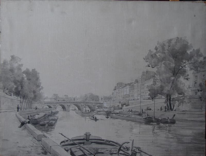 Le pont neuf vu de la berge au pied du quai des Grands Augustins.