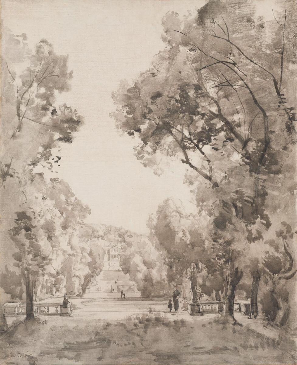 Parc de Saint-Cloud, vue lointaine du château près de l’Allée de la Lanterne de Démosthène.