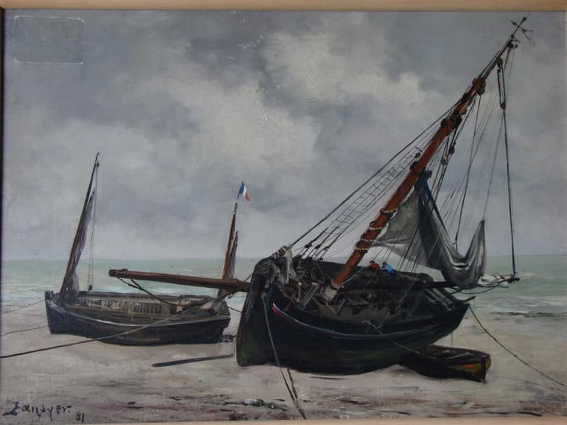 Grande barque, petite barque et un canot échoués (fond de mer).