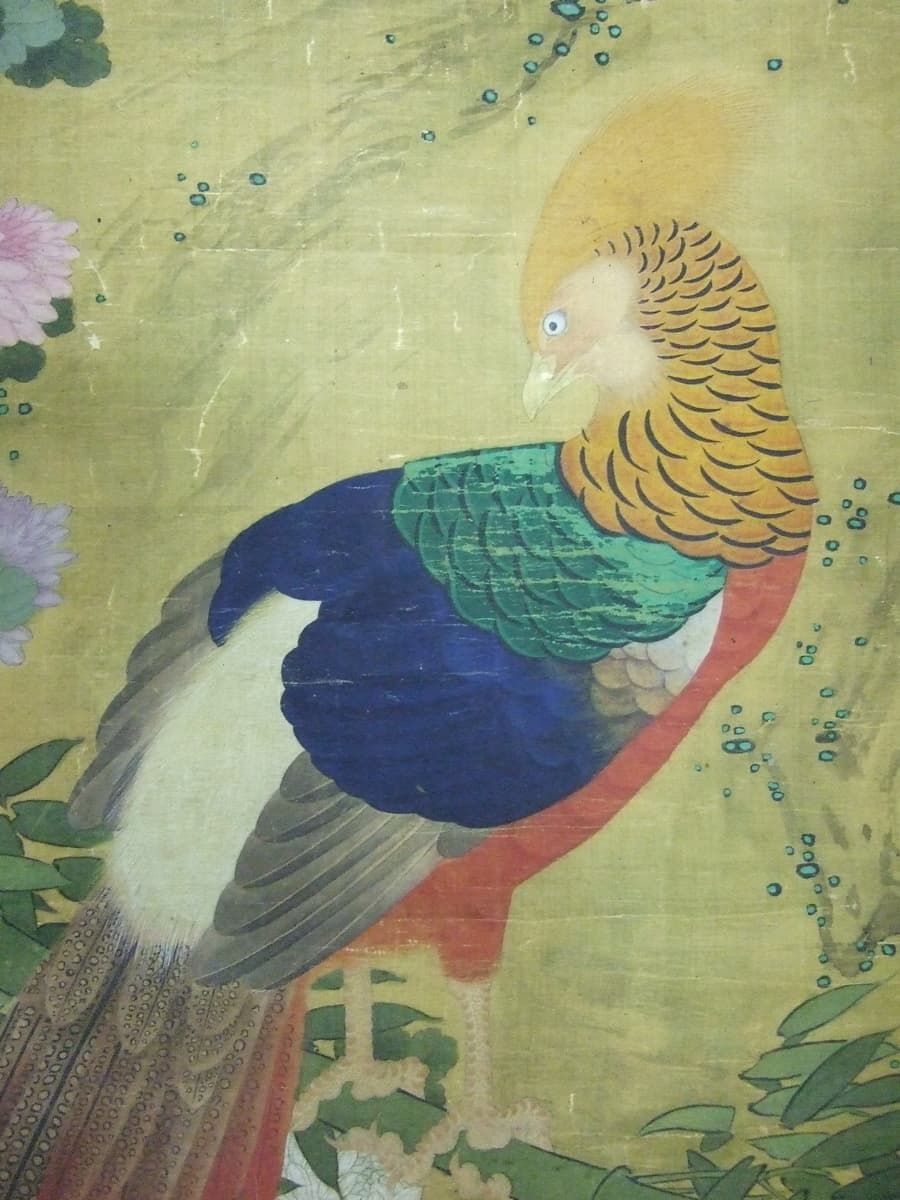POP | Plateforme ouverte du patrimoinePeinture sur rouleau vertical représentant un faisan sur une branche de bambou avec des chrysanthèmes . (titre factice)
