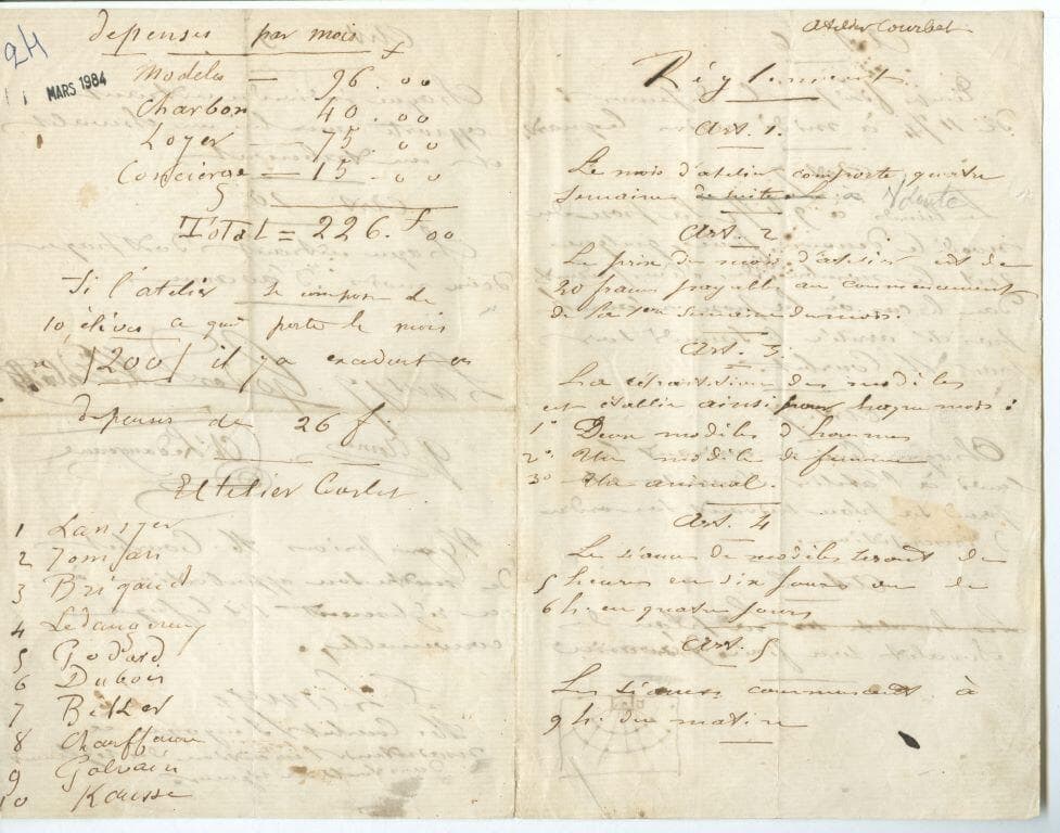 Réglement intérieur de l'atelier Courbet (titre factice)