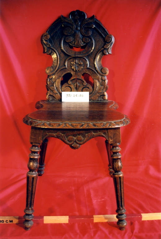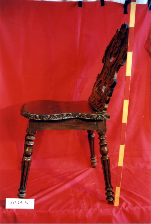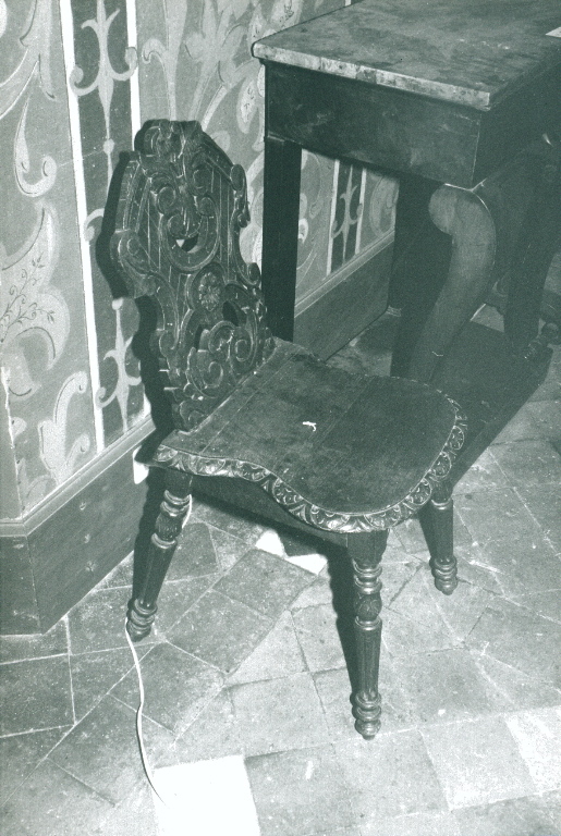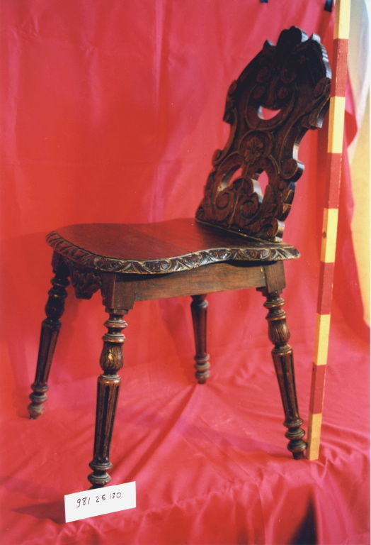 Pattes, siège et dossier ouvragés, on voit des motifs floraux.