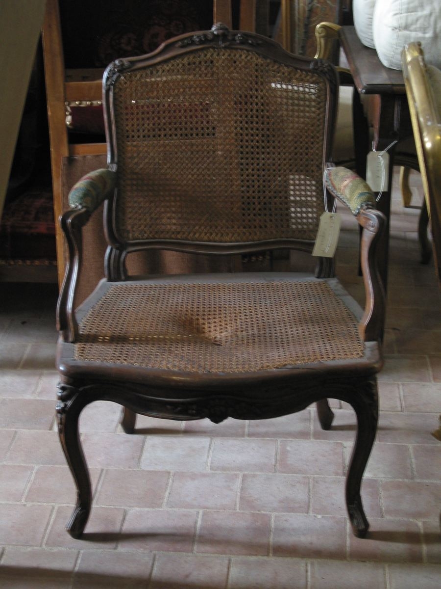 fauteuil époque Louis XV, fût chêne sculpté, siège et dossier canné
