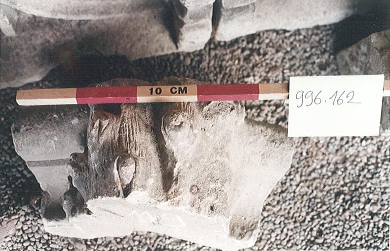 ce fragment provient de la balustrade de l'oratoire dont le musée conserve 13 fragments : 996.161 ; 996.162 ; 996.163 ; 996.164 ; 996.165 ; 996.166 ; 996.167 ; 996.168 ; 996.169 ; 996.170 ; 996.171 ; 996.172 ; 996.173