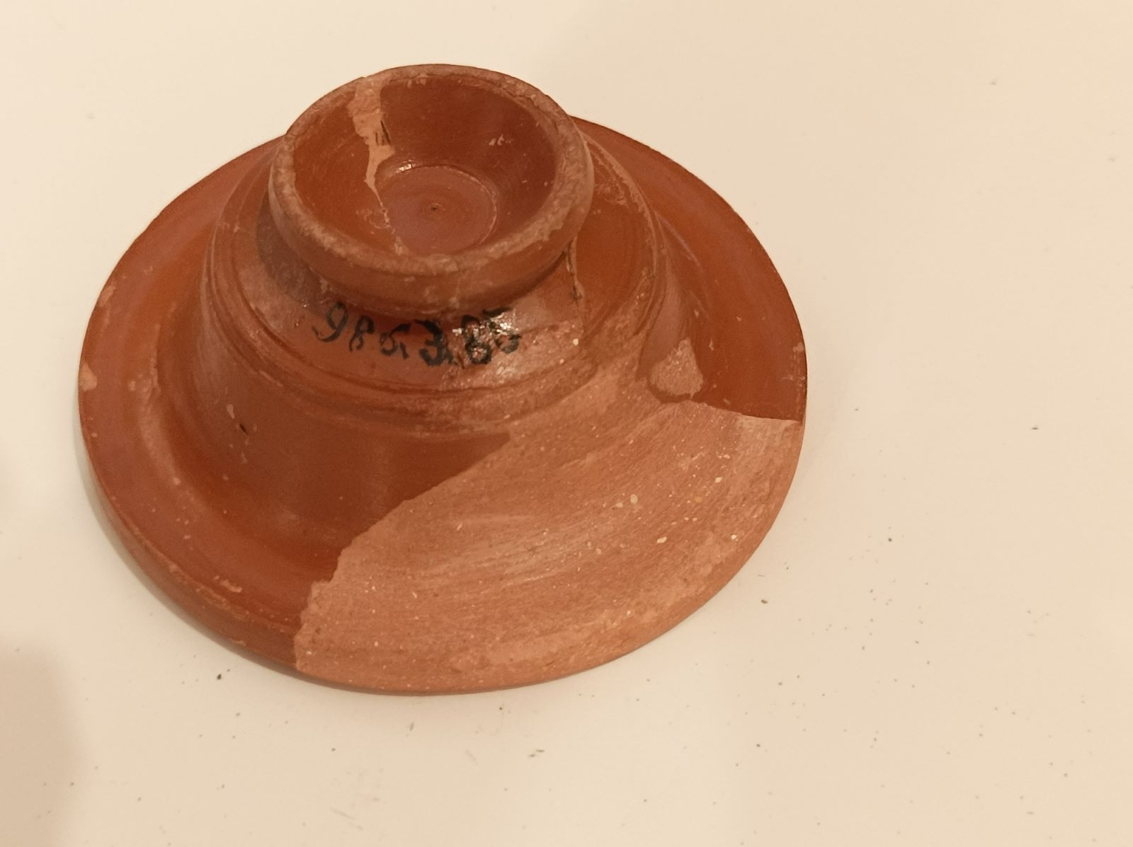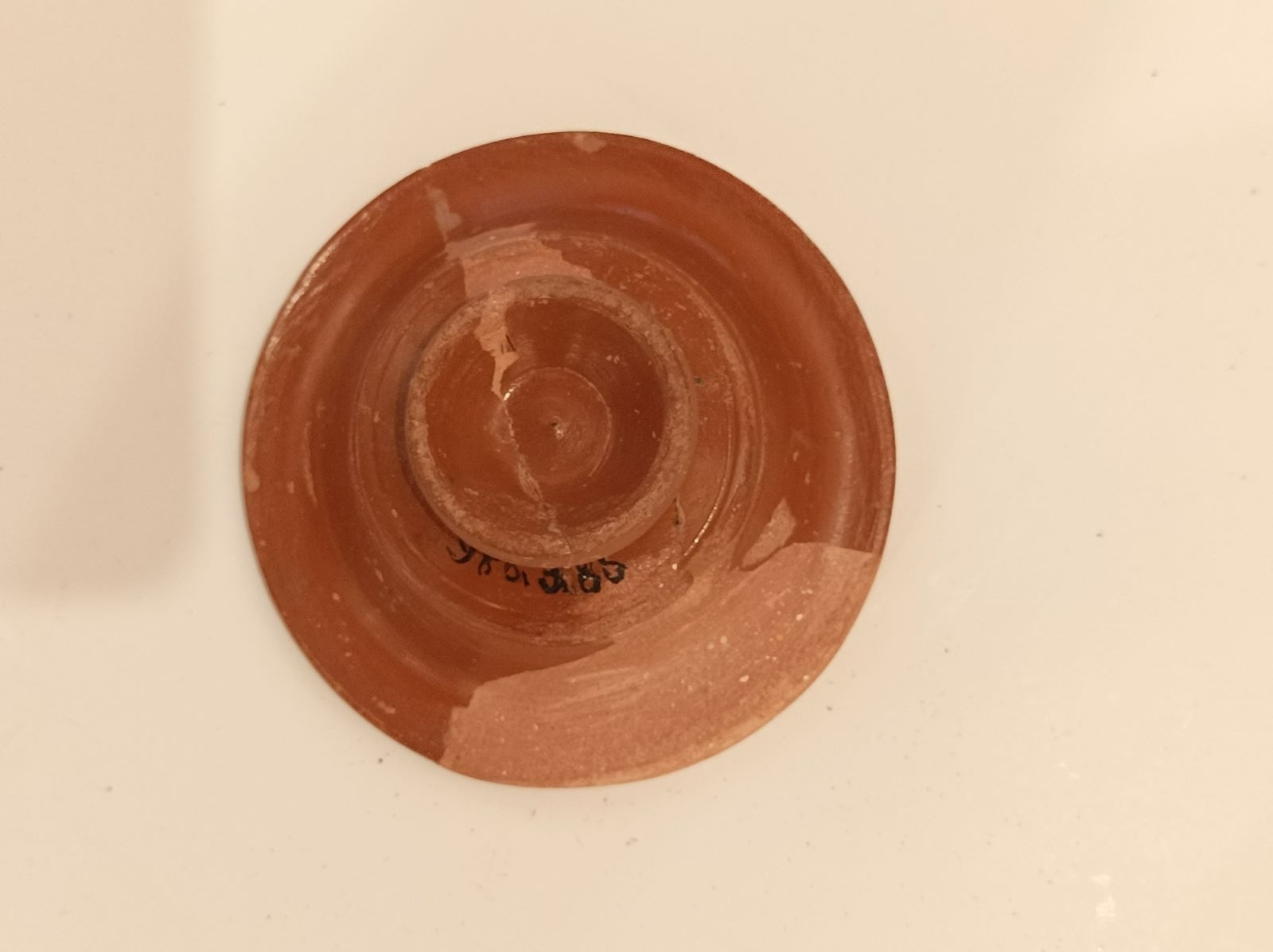 H. 3,7 cm ; E. 0,2 cm ; D. 9 cm ; E. 0,2 cm ; D. 3,5 cm (pied) ; E. 0,7 cm (bord)
