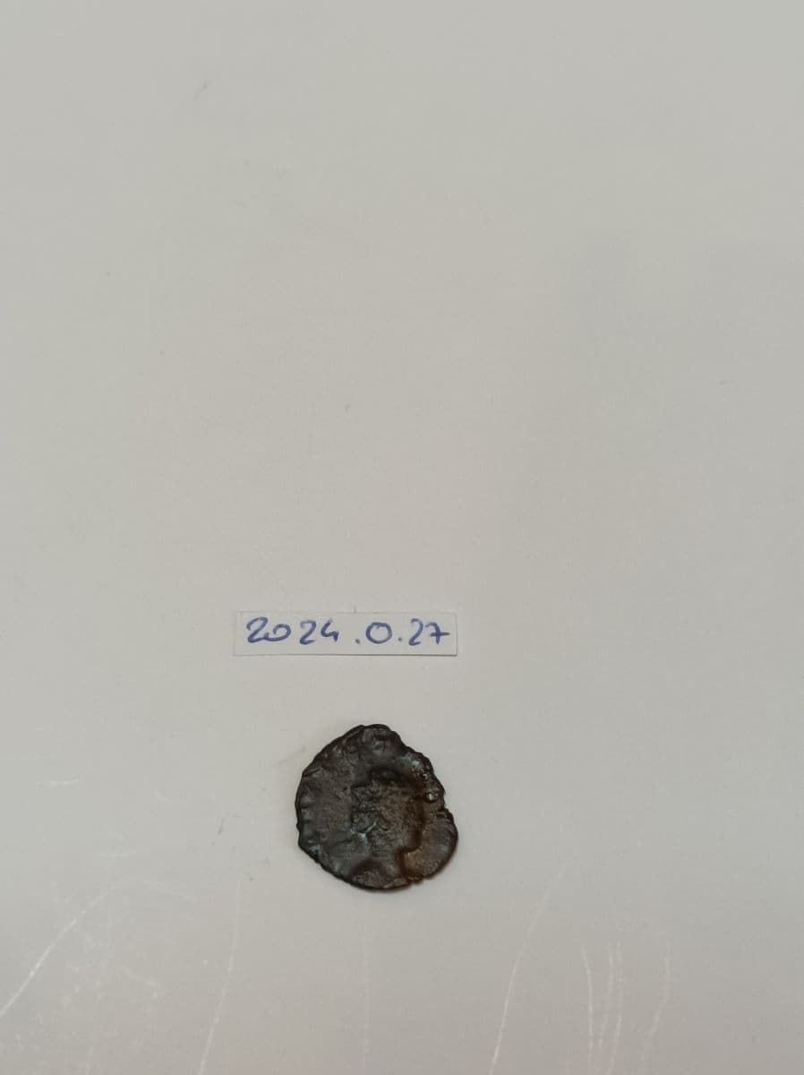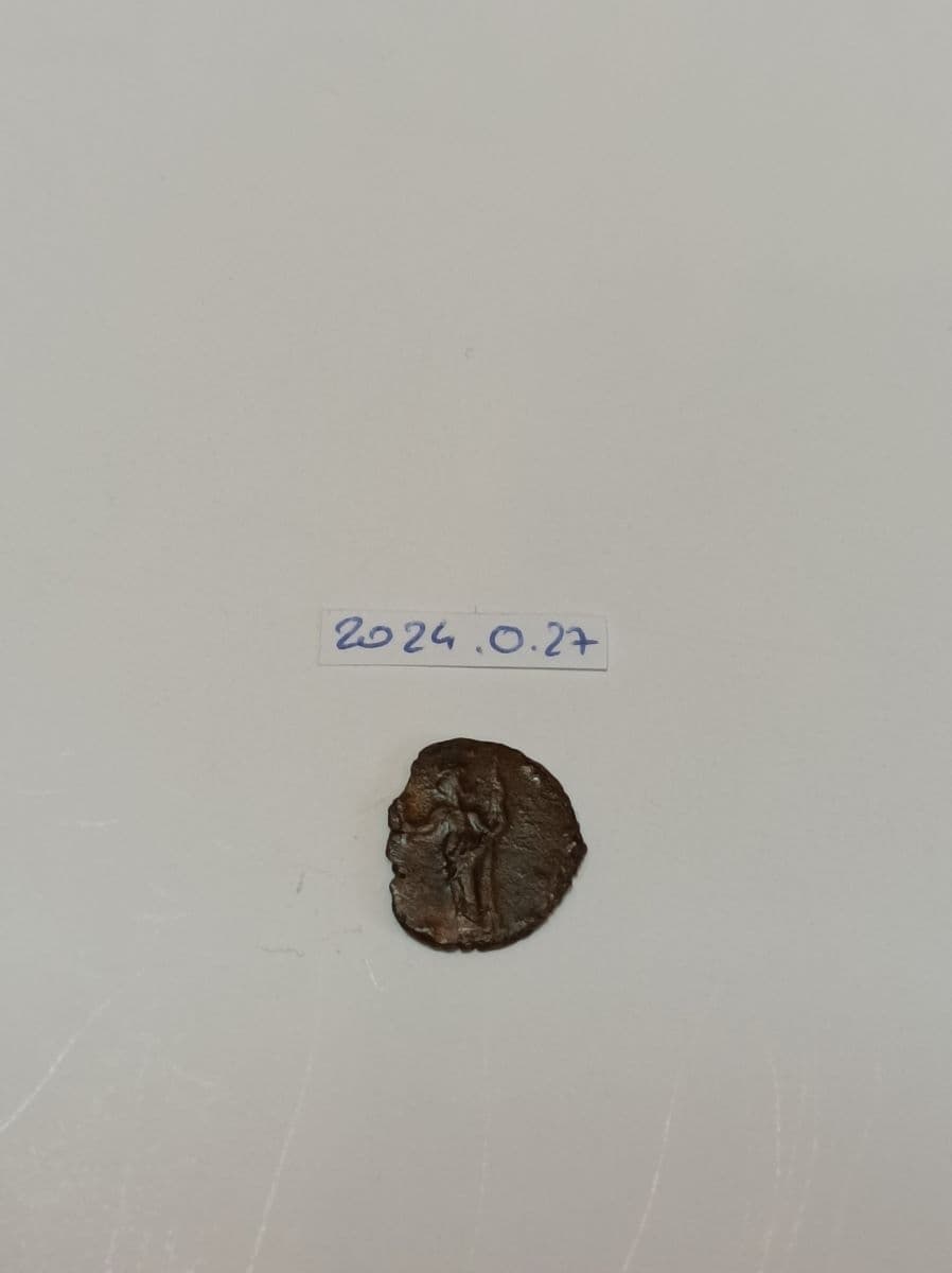 Minimus local de Tetricus II. Droit typ. : Buste radié à droite. Rev. typ. : Pax debout à gauche tenant un rameau et un long sceptre. Droit lég. : [ ] TET [ ] Rev. lég. : [ ] AVGG