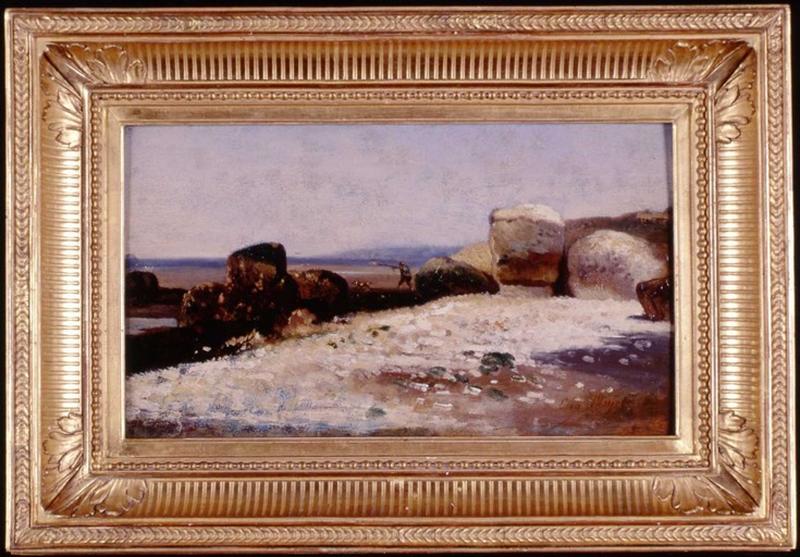 paysage (Villiers-le-Bel, rocher, chasseur, fusil, mer)