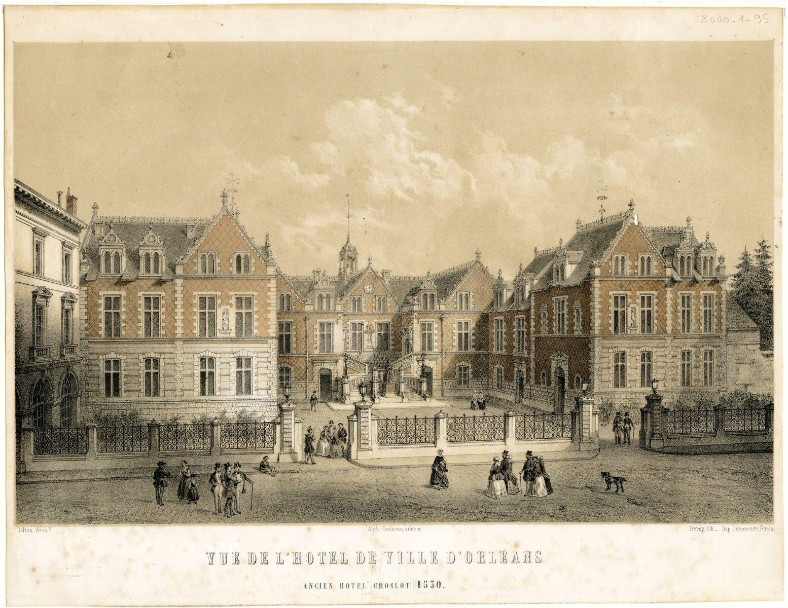 Delton,Archte. (S.b.g.) ; Alph. Gatineau, éditeur (S.b.m.) ; Deroy lith. - Imp Lemercier Paris (S.b.d.) ; VUE DE L’HOTEL DE VILLE d’ORLéANS / ANCIEN HOTEL GROSLOT 1530” (b.m.)