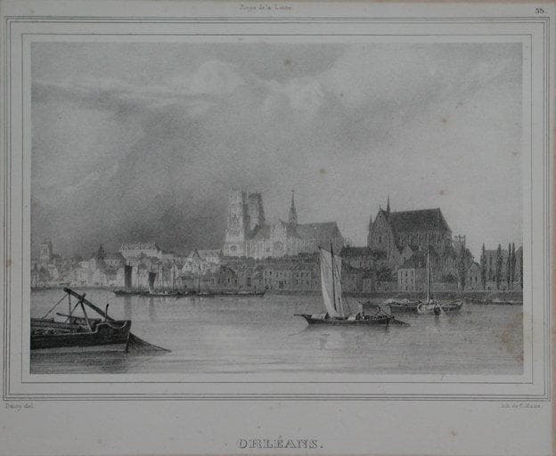 d'après une vue dessinée d'après nature par Deroy, lithographiée pour Les Rives de la Loire dessinés d'après nature et lithographiées par Deroy en 50 vues avec une carte du cours de ce fleuve, imprimé et publi par Ch. motte, éditeur, lithographe du Roi et du Duc d'orléans, 290 rue St Honoré à Paris, 1836