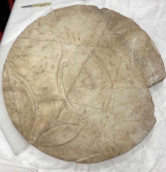 Peu probable qu'il s'agisse d'une dédicace au sanctuaire puisque brisée en deux ?