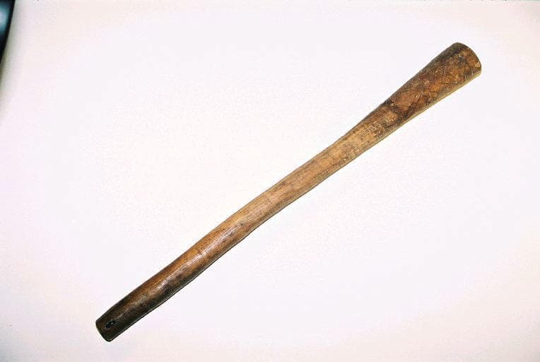 Massue courte à section transversale circulaire, en bois. La partie distale est évasée et comporte un décor de lignes entrecroisées rythmé par 3 bandes délimitées de croix gravées. L'extrémité proximale comporte un orifice permettant de suspendre la massue