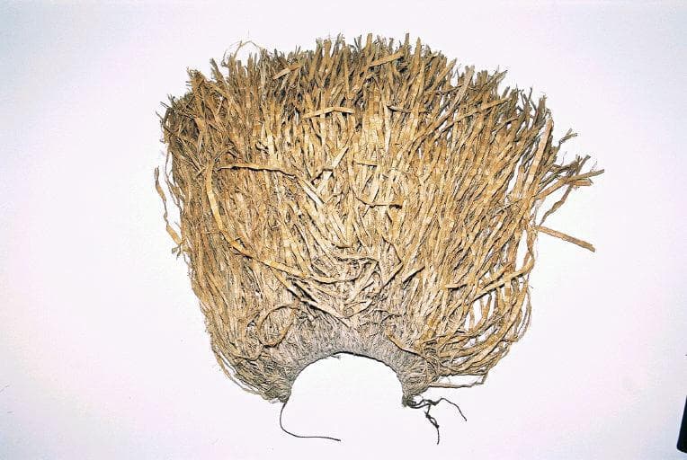 Frange. Deux cordelettes en fibres végétales servaient d'attache à chaque extrémité