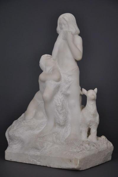 Le groupe a été exposé au Salon de 1903. Le sujet est inspiré de Longus, Daphnis et Chloé, roman pastoral grec du 3e-4e siècle. Daphnis, berger Sicilien d'une grande beauté, gagne le coeur des Muses et des nymphes dont celui de Chloé.
