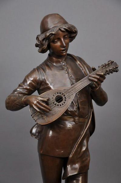 Un jeune homme, vêtu à la florentine, joue de la mandoline. Cette sculpture, qui combine des volumes très lisses et longilignes, et une grande précision dans le détail des vêtements et de l'instrument de musique, fut l'une des plus populaires de l'époque. C'est la deuxième version qu'en donna Paul Dubois. Elle se distingue de la première par la présence d'un tronc d'arbre derrière le musicien.