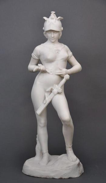 Alfred Boucher a réalisé cette sculpture dans un contexte politique particulier. Lors d'un discours prononcé à Tanger en mars 1905, Guillaume II avait dénoncé les visées françaises sur le Maroc. C'était une provocation envers la France, qui était une puissance coloniale, et un rappel de la défaite de 1870. Boucher, en tant qu'artiste français, réagit avec cette Minerve qui se prépare à partir au combat. L'aspect guerrier de la déesse est toutefois tempéré par le justaucorps moulant des formes qui évoquent l'Art nouveau.