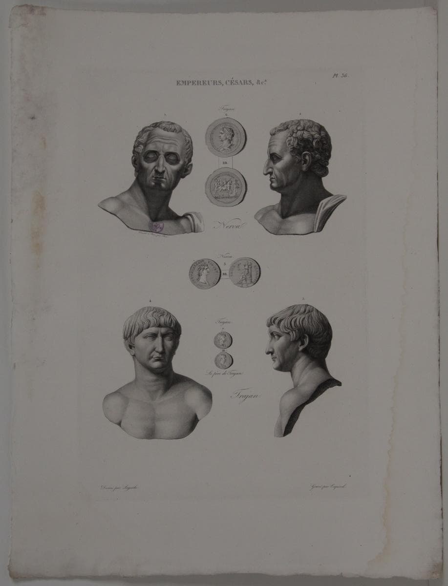 Planches de l'iconographie romaine (pl 36) : Empereurs, Césars, &Ca. : Nerva, Trajan - POP