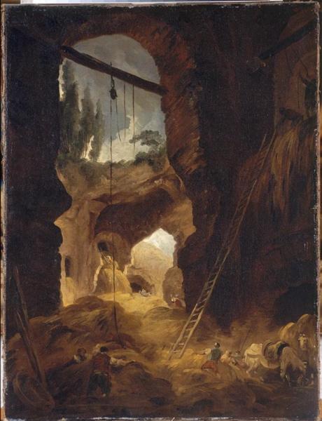La [...] vue est prise depuis l'intérieur de la Domus Augustana dans les ruines du palais bâti par les empereurs romains sur le Palatin. Les tableaux [Ruines du palais des empereurs à Rome et Le Grand jet d'eau de la Villa Conti à Frascati] font partie de cette série où l'art de Robert se rapproche à ce point de celui de Fragonard qu'il tend à s'y confondre [...]. La profondeur rendue par de chauds et délicats rapports chromatiques ainsi que l'énergie employée pour étendre la matière picturale dans la vue du parc n'a d'égale que l'ingéniosité du point de vue, élaboré par plusieurs dessins préparatoires. (in PINETTE Matthieu et SOULIER-FRANCOIS Françoise, De Bellini à Bonnard, Paris, Pierre Zech Editeur, 1992, p.132) ;