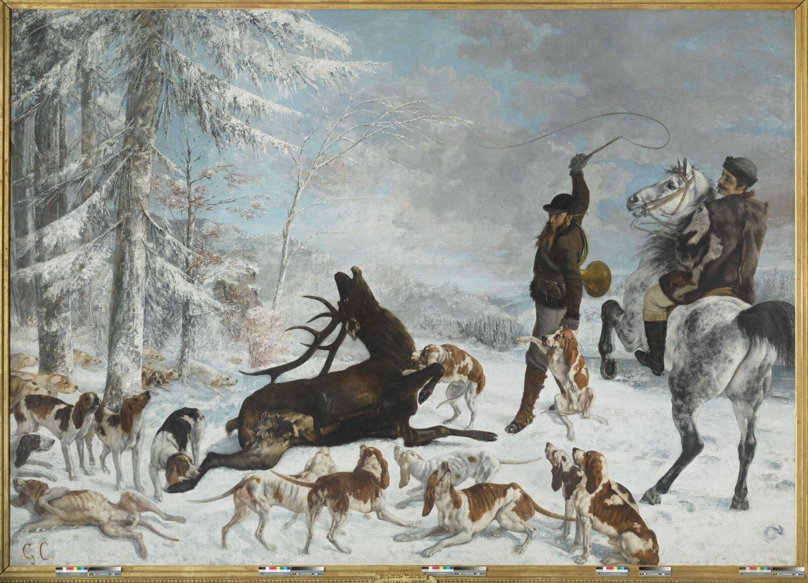 CASTAN Auguste, Histoire et description des musées de la ville de Besançon, Paris, Plon, Nourrit et Cie, 1889, p.28 ; TOUSSAINT Hélène, FORGES Marie-Thérèse de, Gustave Courbet : 1819-1877, cat. exp. [1 oct. 1977 - 2 Janvier 1978, Grand Palais, Paris, 19 Janvier - 19 Mars 1978, Royal Academy, Londres], Paris, RMN, 1977, p.42-43, 45, 191, 193 ; FERNIER Robert, La Vie et l'œuvre de Gustave Courbet : catalogue raisonné, Lausanne / Paris, coéd. Fondation Wildenstein / la Bibliothèque des arts, 1978, p.46-47, n°612 ; COURTHION Pierre, Tout l'oeuvre peint de Courbet , Paris, Flammarion, 1987, p.107, n°595, pl.XXXIV ; ROBINSON Margaret, Courbet’s Hunt Scenes. The End of a Tradition, Providence, Long Island, 1990, p.1-24 ; PINETTE Matthieu, SOULIER-FRANÇOIS Françoise, De Bellini à Bonnard. Chefs-d’oeuvre de la peinture du Musée des Beaux-Arts et d’Archéologie de Besançon, Paris, Pierre Zech Editeur, 1992, p.184, reprod. en couleurs p.185 ; AHLUND Mikael et ZUTTER Jörg, Gustave Courbet : en revoltör lanserar sitt verk, cat. exp. [21 nov. 1998 - 7 mars 1999, Musée cantonal des Beaux-Arts, Lausanne, 26 mars - 30 mai 1999, Nationalmuseum, Staockholm], Stockholm, Nationalmuseum Stockholm, 1998, p.95 ; BAJOU Valérie, Courbet, Paris, Adam Biro, 2003, p.271-273 ; Guide des collections. Musée des beaux-arts et d’archéologie de Besançon, Besançon, Milan, Silvana Editoriale, 2018, 258-259 ; De POLI Luigi, Courbet et le "continent noir" : de l'érotisme voyeur à la question de genre, Paris, L'Harmattan, 2021, 123