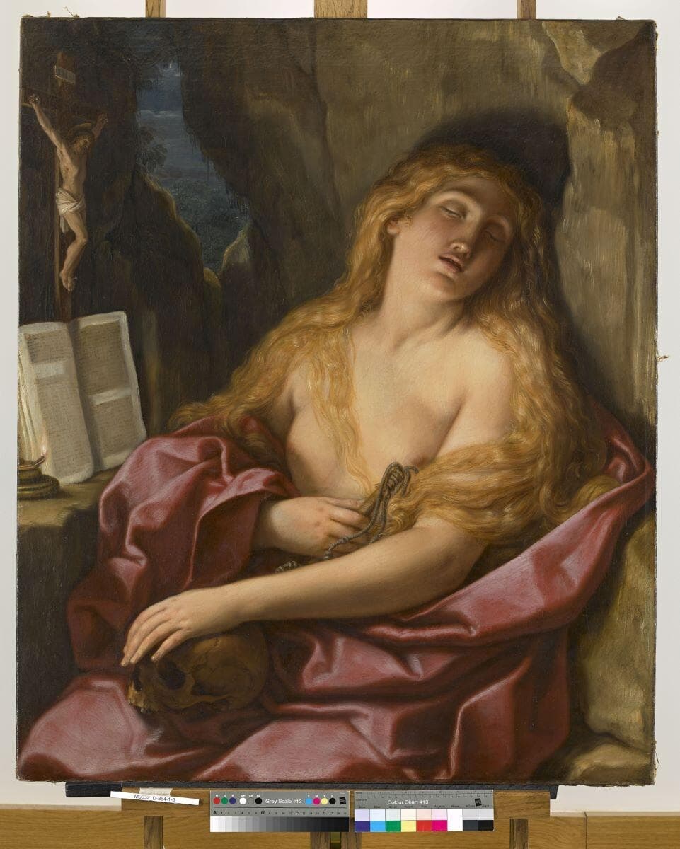 LANCRENON Joseph-Ferdinand, Musées de Besançon. Catalogue des peintures, dessins et sculptures, Besançon, Dodivers et Cie, 1865, 59, n° 249 ; LANCRENON Joseph-Ferdinand, CASTAN Auguste (édition revue et complétée par A. Castan) , Musées de Besançon. Catalogue des peintures, dessins et sculptures, Besançon, Dodivers et Cie, 1879, p.106, n° 423 ; CASTAN Auguste, Musées de Besançon. Catalogue des peintures, dessins, sculptures et antiquités, Besançon, Dodivers et Cie, 1886, 164, n° 449 ; CASTAN Auguste, Histoire et description des musées de la ville de Besançon, Paris, Plon, Nourrit et Cie, 1889, p.70-71 ; MAGNIN Jeanne, La Peinture et le dessin au Musée de Besançon, Dijon, Impr. Darantière, 1919, 261 ; CHUDANT Adolphe, Musées de Besançon. Catalogue des peintures et dessins : collection Jean Gigoux, collection Adrien Pâris, écoles anciennes, Besançon, Impr. de l'Est, 1929, p.124, n°141 ; MOSCO Marilena (sous la dir. de), La Maddalena tra sacro e profano. Da Giotto a De Chirico, cat. exp. [24 mai - 7 sept. 1986, Palazzo Pitti, Florence], Florence, Casa Usher, 1986, p.202-203, n°76 ; BREJON DE LAVERGNEE Arnauld, VOLLE Nathalie, Musées de France. Répertoire des peintures italiennes du XVIIe siècle, Paris, RMN, 1988, p.317 ; TAPIÉ Alain (Dir.), DAUTEL Jean-Marie et ROUILLARD Philippe, Les Vanités dans la peinture au XVIIe siècle : méditation sur la richesse, le dénuement et la rédemption, cat. exp. [27 juillet - 15 oct. 1990, Musée des Beaux-Arts, Caen, 15 nov. 1990 - 20 janvier 1991, Petit Palais, Paris], Paris / Caen, coéd. A. Michel / Musée des Beaux-Arts de Caen, 1990, p.154-155, n° F.32 ; VUARNET Jean-Noël, Extases féminines, Paris, Hatier, 1991 ; PINETTE Matthieu, SOULIER-FRANÇOIS Françoise, De Bellini à Bonnard. Chefs-d’oeuvre de la peinture du Musée des Beaux-Arts et d’Archéologie de Besançon, Paris, Pierre Zech Editeur, 1992, p.106, reprod. en couleurs p.107 ; SURYA Michel, Georges Bataille : une liberté souveraine, cat. exp. [20 nov. 1997 - 31 janvier 1998, Médiathèque, Orléans], Paris / Orléans, coéd. Fourbis / Ville d'Orléans, 1997, p.32 ; TENENTI Alberto, SCARAMELLA P. et al., Humana fragilitas : i temi della morte in Europa tra Duecento e Settecento, Clusone, Ferrari, 2000, p.78, reprod. en couleurs p.80 ; MODESTI Adelina, Elisabetta Sirani : una virtuosa del Seicento bolognese, Bologne, Compositori, 2004, p.184 ; Le Signore dell’Arte, Milan (Palazzo Reale), 2 mars - 25 juillet 2021, p. 190 ; JOYEUX Nicolas, L’oeil et la main. Les peintures italiennes du musée des Beaux-Arts et d’Archéologie de Besançon, Milan, Silvana Editoriale, 2021, p. 164-165, cat. 56
