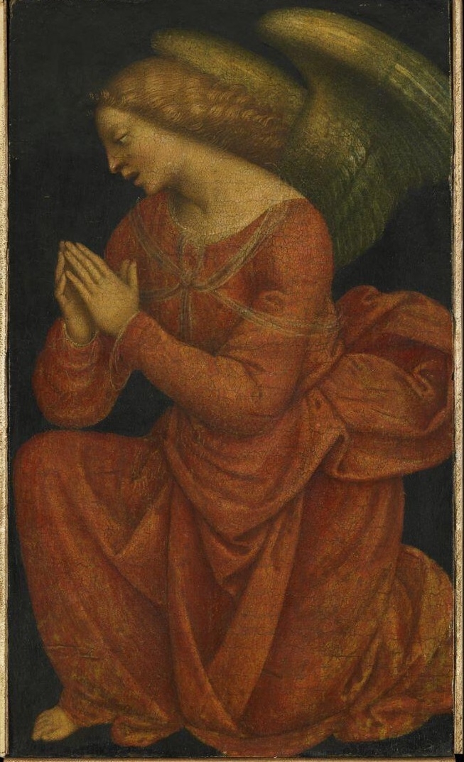 Ce petit panneau, ainsi qu’un autre représentant un ange adorateur et conservé également au musée de Besançon, devaient entrer autrefois dans la composition d’un retable, mais il n’est pas possible aujourd’hui d’indiquer dans quel ensemble il s’inscrivaient. Ces deux anges agenouillés [...], devaient en effet se faire face symétriquement de part et d’autre d’un élément central aujourd’hui disparu. Le style de ces tableaux appartient bien à Gaudenzio [...] on connaît d’autres oeuvres de petit format où [...] tout s’accorde avec les panneaux bisontins. in PINETTE Matthieu et SOULIER-FRANCOIS Françoise, De Bellini à Bonnard, Paris, Pierre Zech Editeur, 1992, p.48