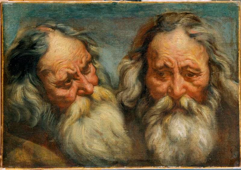 La peinture [...] réunit deux études de la même tête d'un vieil homme barbu aux longs cheveux [...]. Elle a certainement été exécutée dans les années 1618-1620 lorsque le peintre, au début de sa carrière, travaille en étroite collaboration avec son maître, Pierre-Paul Rubens (1577-1640). Il compte parmi ses compagnons au sein de l'atelier Antoine Van Dyck [...]. On s'accorde aujourd'hui unanimement à donner à Jordaens notre tableau ; la 'robustesse énergique [...] l'épaisseur de la pâte liée à une évidente liberté du pinceau désignent Jordaens [...]. Un heureux hasard veut que le musée de Besançon possède une Tête d'homme barbu de Van Dyck [...] : là ou Jordaens contient les émotions dans un faire solide, grâce à une touche ample, grasse et généreuse, Van dyck se révèle plus frémissant [...] nerveux et lisse. (in PINETTE Matthieu et SOULIER-FRANCOIS Françoise, De Bellini à Bonnard, Paris, Pierre Zech Editeur, 1992, p.58) ;
