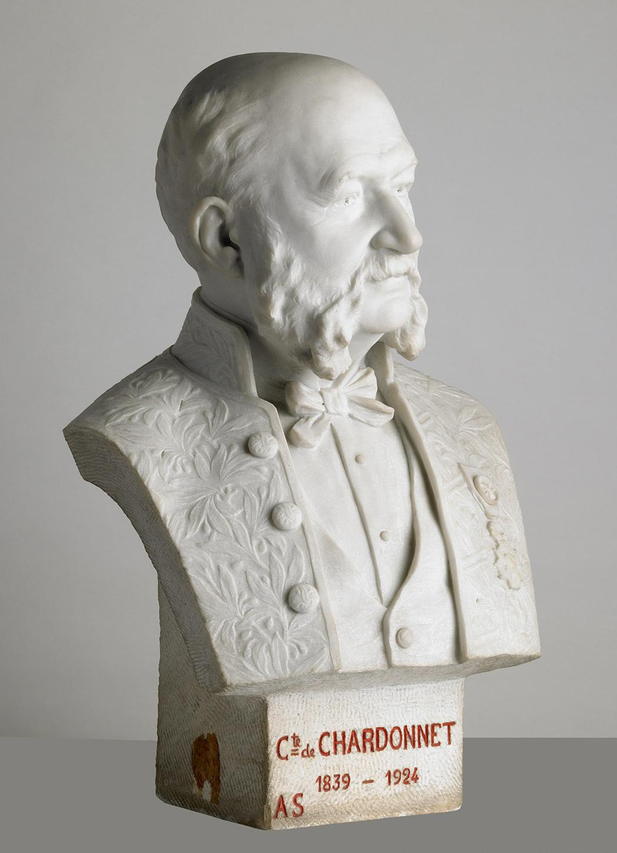 signé et daté sur l’épaule droite : A. de Chardonnet/1923 ; inscription sur la face antérieure du socle : Cte de Chardonnet /1839-1924/AS