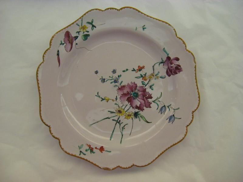 plat en faïence de petit feu, aile à bord lobé et revers : émail blanc monochrome