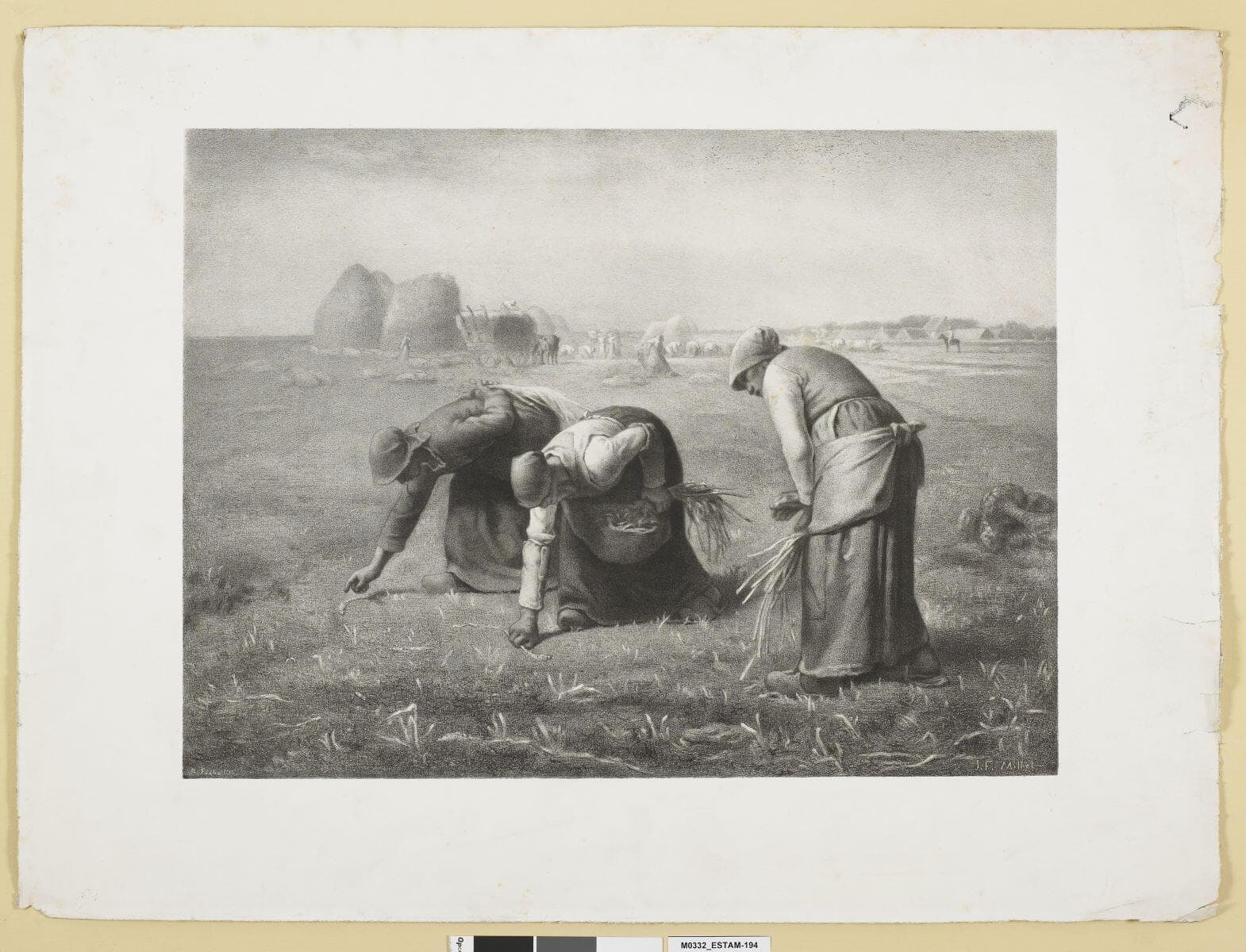 achat par commande à l'artiste ; dépôt de l'Etat à Besançon, 1897lithographie d'après le tableau de Jean-François Millet, Les Glaneuses (1857), conservé au musée d'Orsay (inv. RF 592)
