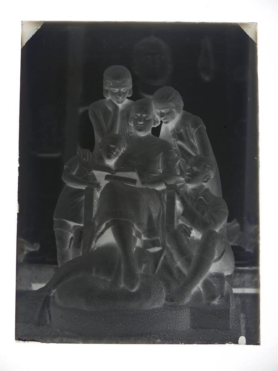 Le groupe sculpté de la Famille Félix photographié dans l'atelier