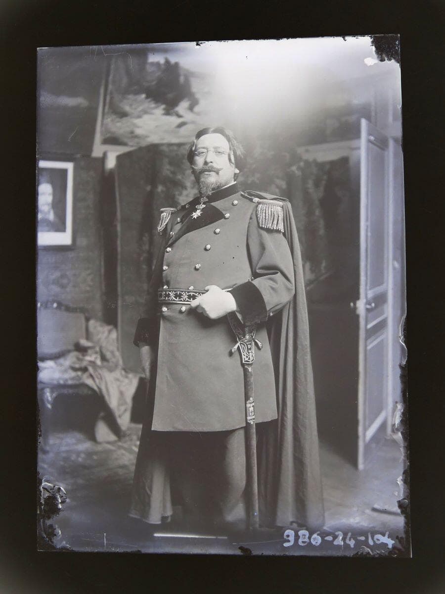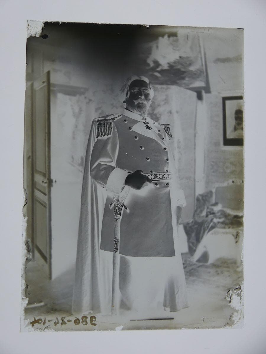 Portrait du peintre Léon Tirode posant debout en costume militaire