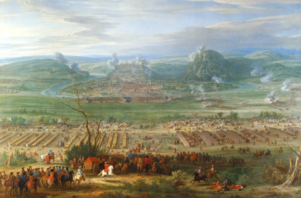 scène historique ; Besançon ; siège ; bataille ; armée ; campement ; Louis XIV ; cheval