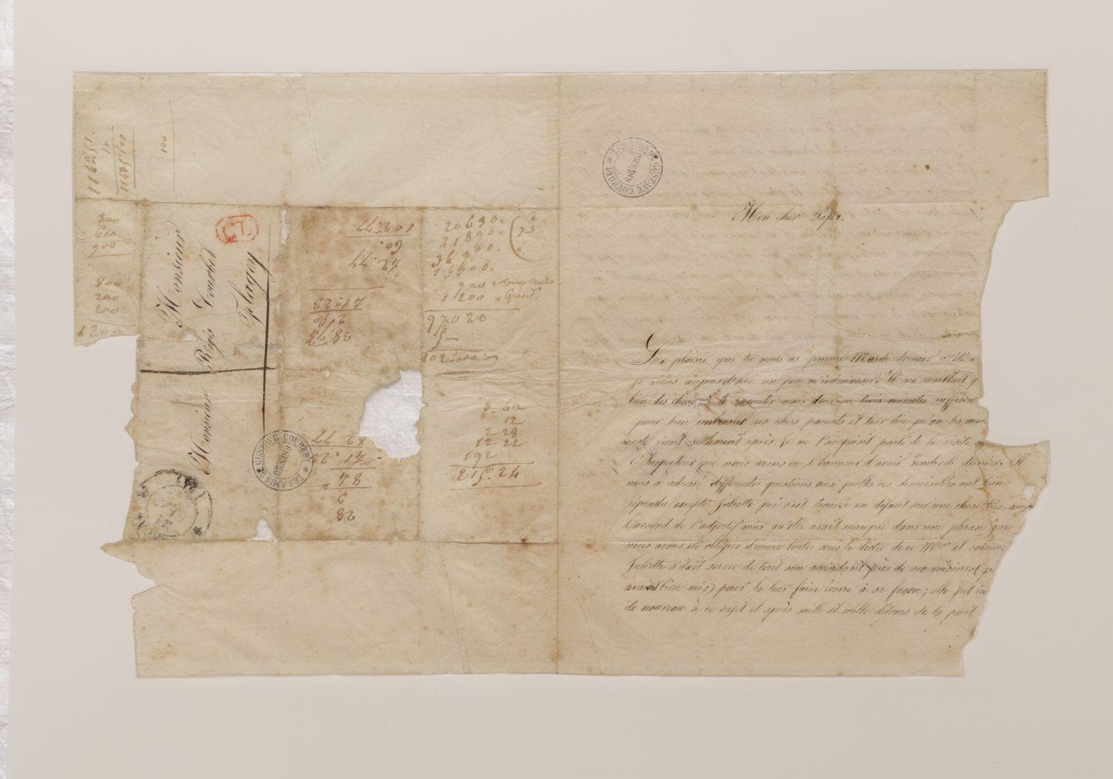 H. 21.4 cm ; l. 34.5 cm (Lettre) ; H. 32.5 cm ; l. 41.4 cm (Support)