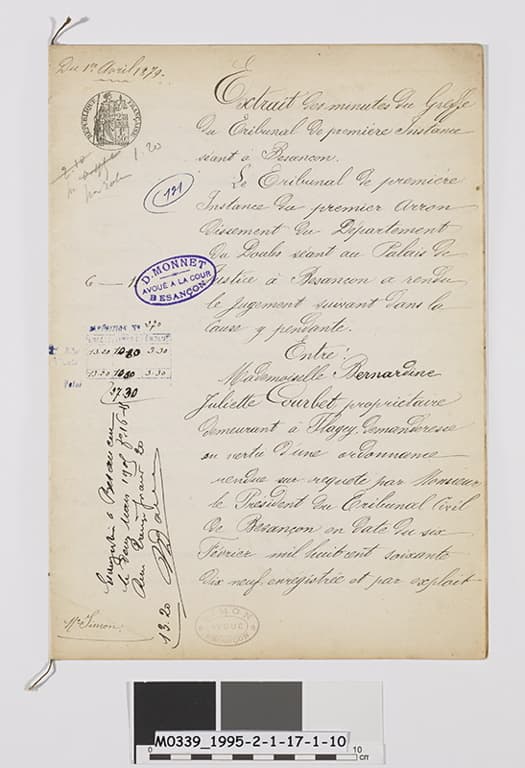 Verdict du jugement entre Juliette Courbet et Zoé Courbet lié au deux faux testaments de Gustave Courbet