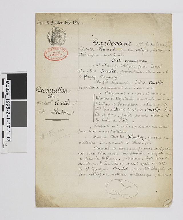 POP | Plateforme ouverte du patrimoineProcuration de Juliette Courbet à Monsieur Blondon