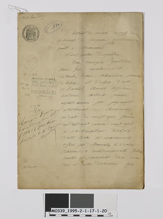POP | Plateforme ouverte du patrimoineRapport d'expertise détaillant les objets donnés par Blondon à Juliette Courbet à la suite du verdict rendu en janvier 1887 (titre factice)