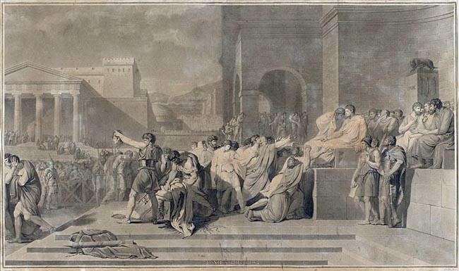 scène historique (Rome, Junius Brutus, sentence, mort, foule, temple)